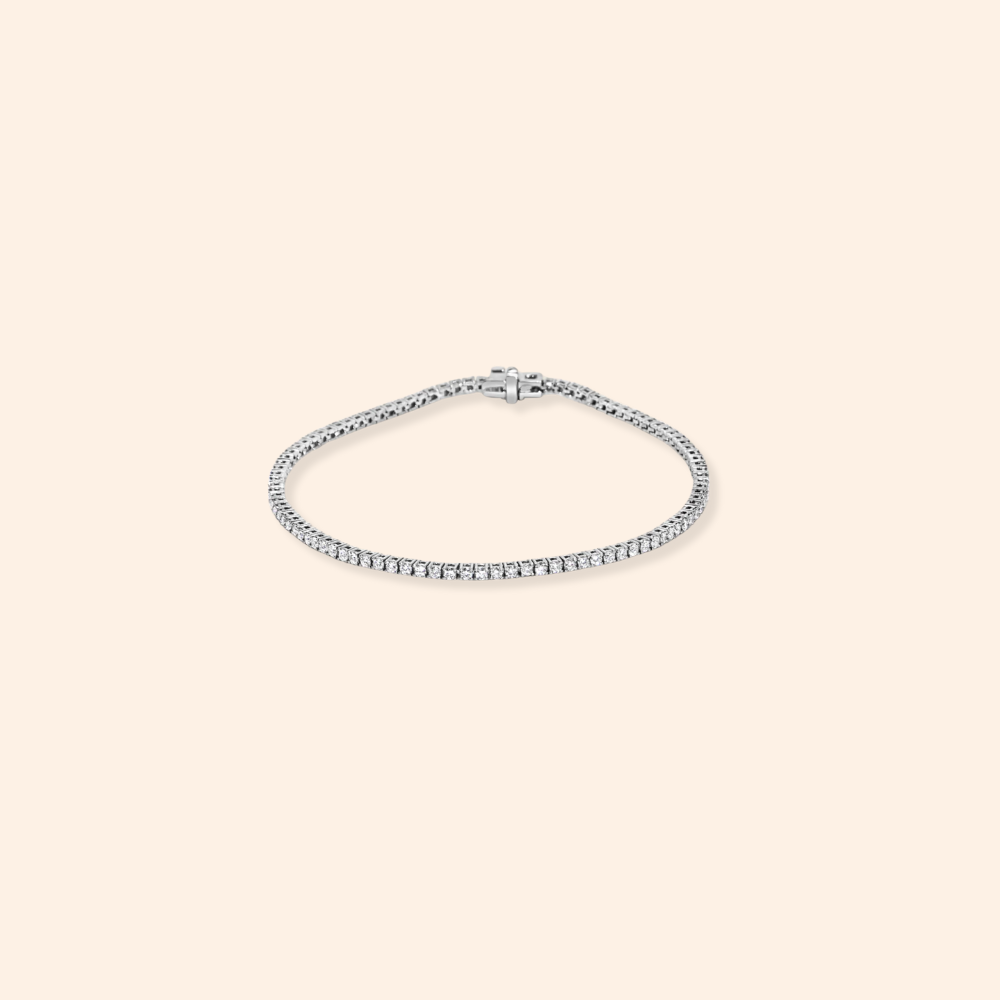Timeless brilliance, reimagined. Crafted in solid 14K Italian white gold, this elegant tennis bracelet features 1.56 carats of radiant lab-grown diamonds—delivering exceptional sparkle with sustainable sophistication.