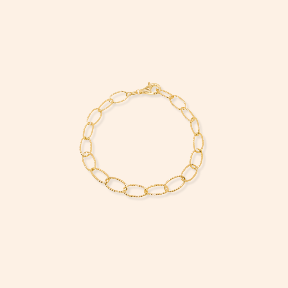 Refined texture, radiant shine. Crafted with intricately twisted oval links, this lightweight yet durable bracelet is perfect solo or stacked. A modern twist on the classic chain—ideal for everyday elegance or a meaningful gift..