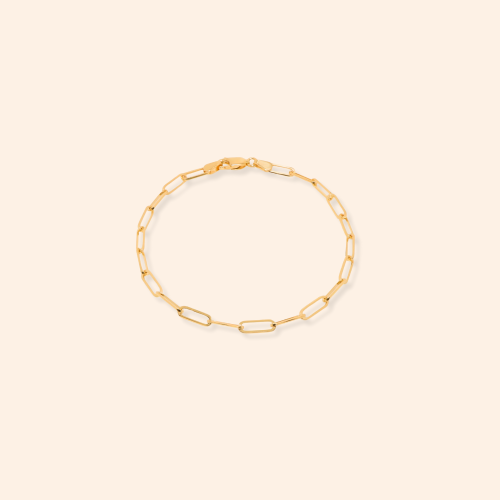 Crafted from solid 10K Italian Yellow Gold, this sleek paperclip bracelet delivers clean lines and effortless elegance. Lightweight yet impactful, it’s designed to wear solo or layered for a contemporary edge.
